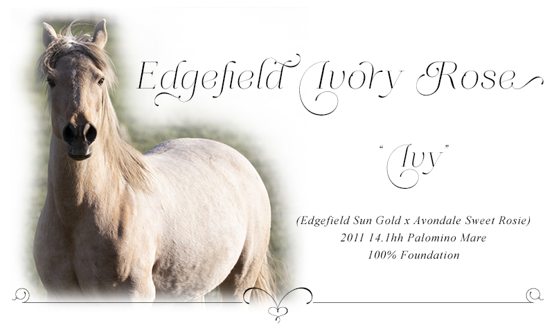 Ivy is the last foal of the lovely black mare Avondale Sweet Rosie and takes much after her momma in type. She has a short back and a long hip and can very easily collect underneath herself. Ivy has an engine and knows how to use it - possessing wonderful self-carriage. Don't let her pony height fool you - she rides like a much larger horse with the most comfortable, lofty gaits.